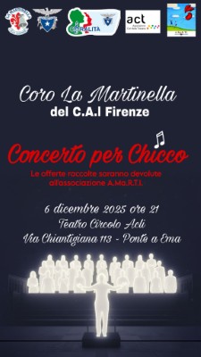 Ponte a Ema, FirenzeConcerto per Chicco 2025Concerto per Chicco 2025, Coro La Martinella del C.A.I. Firenze, presso Circolo ACLI Ponte a Ema, via Chiantigiana, 113, Bagno a Ripoli, Firenze, il giorno 6 Dicembre 2025 alle ore 21:00